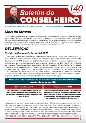 Boletim CA - Celesc Boletim do Conselheiro – 140 2 de novembro de 202011 de novembro de 2020 admin 0 comentários