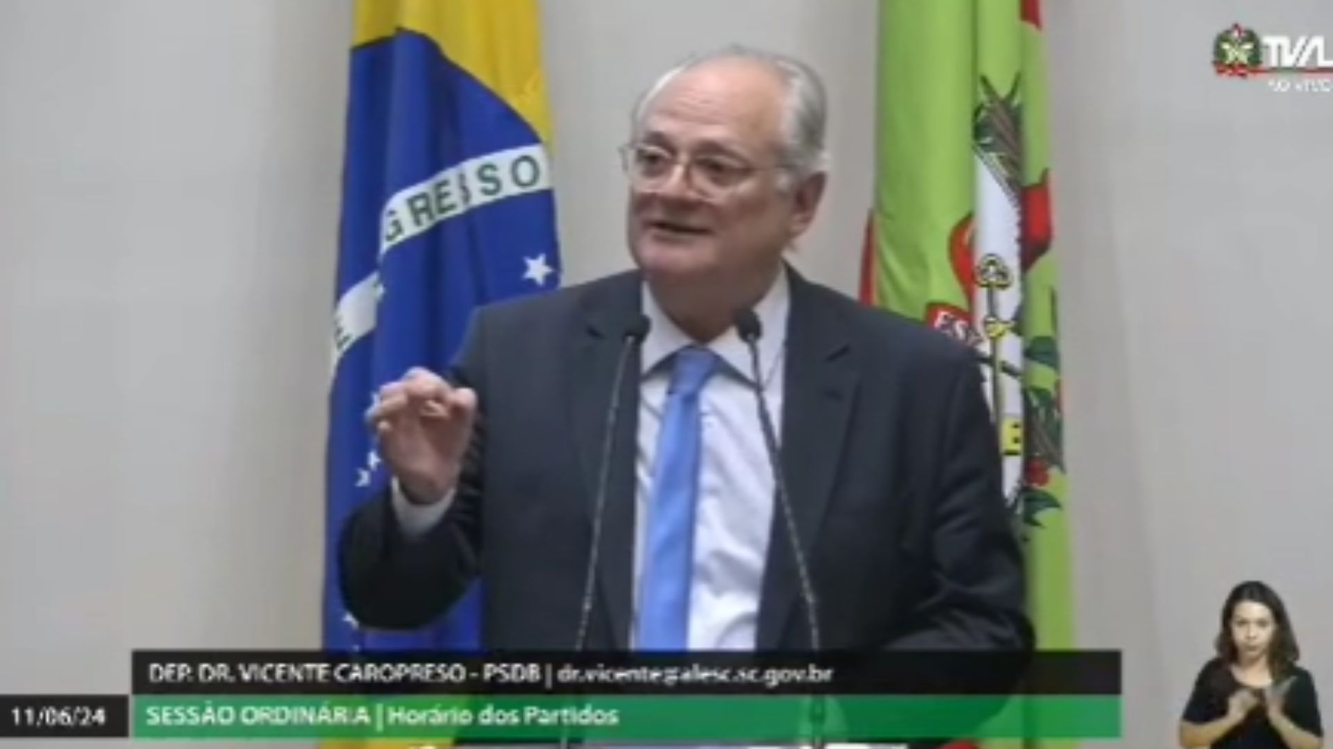 O deputado estadual Dr. Vicente Caropreso (PSDB) se pronunciou na Tribuna da Assembleia Legislativa de Santa Catarina em 11 de junho em defesa da manutenção da Celesc enquanto empresa pública. Ele destacou que hoje “há uma série de propostas que defendem que o Estado não deve interferir nas atividades econômicas e que o setor privado é sempre superior ao público na hora de atender à sociedade”.
