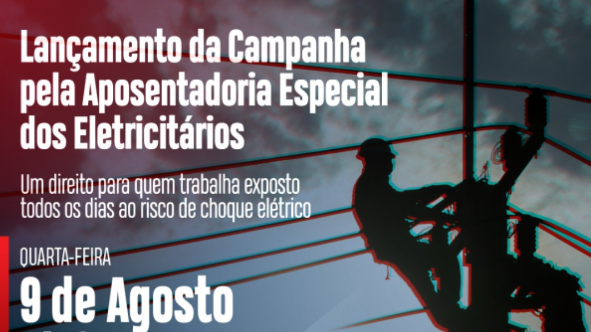 Na quarta-feira (9 de agosto), às 9 horas, junto ao relançamento da Frente Parlamentar Mista em Defesa da Previdência Social, na Câmara dos Deputados, os eletricitários lançam a Campanha em Defesa da Aposentadoria Especial dos Eletricitários, onde também será exibido um vídeo para sensibilizar parlamentares e sociedade sobre a importância do direito à aposentadoria especial a grande parte dos eletricitários que trabalham expostos ao agente perigoso eletricidade.