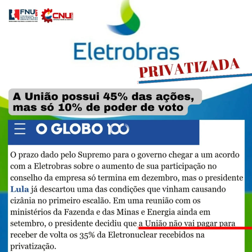 O prazo dado pelo Supremo Tribnal Federal (STF) para o governo chegar a um acordo com a Eletrobras sobre essa questão termina em dezembro. Na Eletrobras privatizada, a União possui 45% das ações da empresa, mas, devido ao modelo atual de governança, exerce poder de voto equivalente a apenas 10% das ações. Essa amarra é herança do modelo de privatização da gestão Jair Bolsonaro e Paulo Guedes. É para reverter essa situação que o governo federal está nas negociações com a Eletrobras e quer redefinir seu poder de voto.