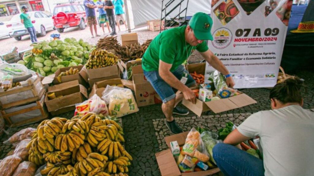 A Feira da Reforma Agrária, Agricultura Familiar e Economia Solidária foi realizada entre os dias 7 e 9 de novembro na Praça da Cidadania da UFSC, na capital. O evento, iniciativa do Movimento dos Trabalhadores Sem Terra, reuniu expositores e visitantes para promover a comercialização de produtos agroecológicos e discussões sobre sustentabilidade. Mesas de debate sobre alimentação saudável e certificação agroecológica também foram realizadas. Ao fim do evento, foram doadas mais de três toneladas de alimentos a diferentes entidades e comunidades. As beneficiárias foram cozinhas solidárias que trabalham com pessoas em situação de rua, o grupo Pixurum e o Cachorro Quente de São Francisco; a comunidade indígena Itanhaém, de Biguaçu; a Pastoral da Criança; e a Associação Ecológica, ambas do bairro da Tapera, sul da Ilha de Florianópolis.