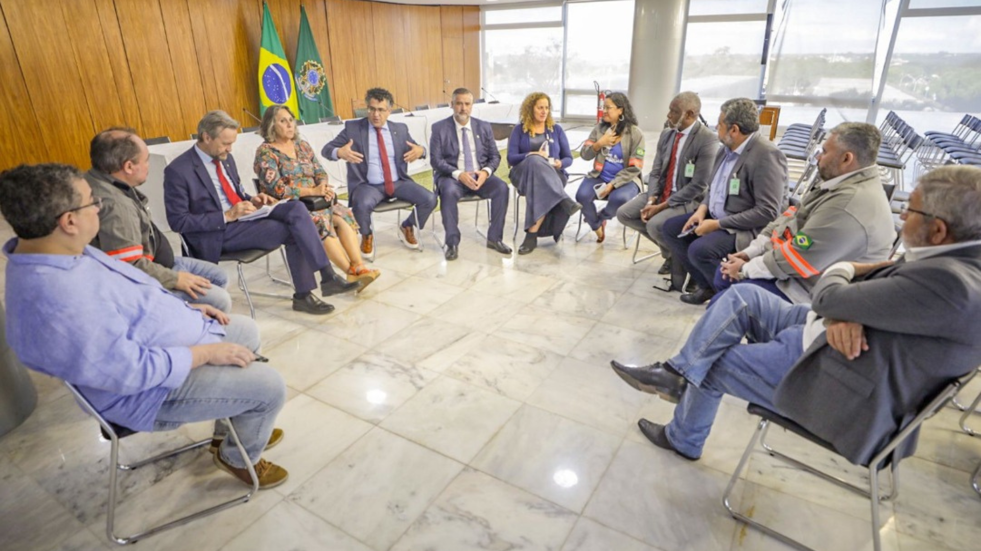 Na terça-feira, dia 2 de maio, o Ministro-Chefe da Secretaria de Comunicação Social da Presidência da República, Paulo Pimenta, recebeu em Brasília parlamentares que representam a Frente Parlamentar Mista pela Reestatização da Eletrobras e membros do Coletivo Nacional dos Eletricitários (CNE).